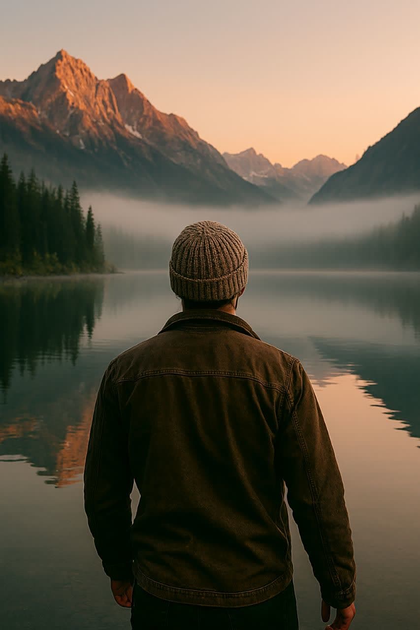5. زاویه از پشت یا کنار (Over-the-Shoulder / Side View)- برای روایت داستان یا ایجاد حس حضور - مثال: فردی که به منظره نگاه میکند